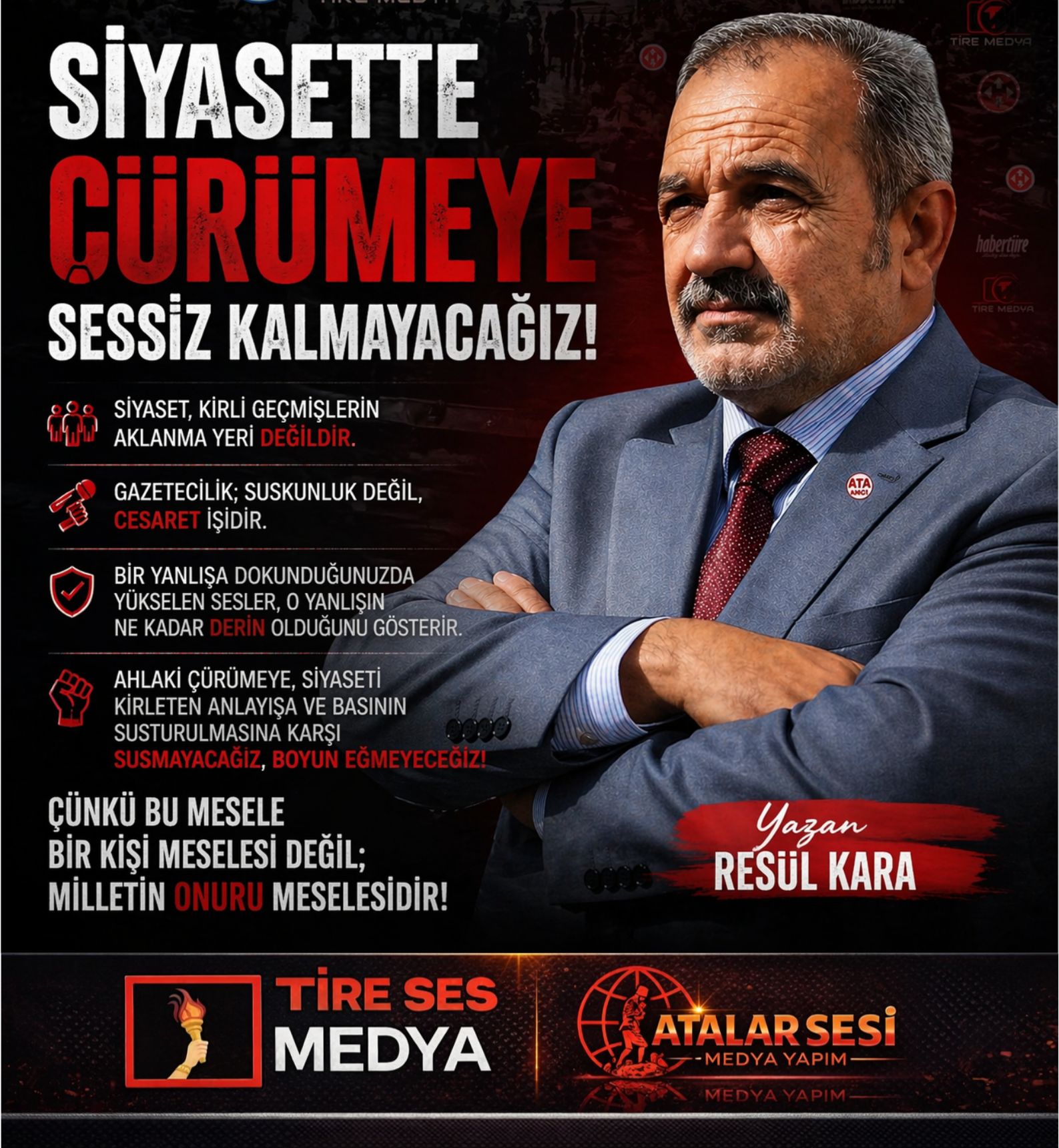Resül KARA Siyaset, kirli geçmişlerin aklanma yeri değildir. Siyaset, toplumun en temiz kalması gereken alanıdır. Toplum vicdanını derinden yaralayan, ağırlığı tartışma götürmeyecek dosyalarla anılan kişilerin; hangi partiden olursa olsun,..