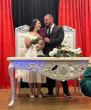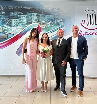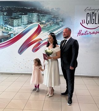 Çiğli Nikah Dairesi’nde kıyılan bu özel günde; Tırak ile Bakır aileleri ve gençlerin arkadaşları çifti yalnız bırakmadı.