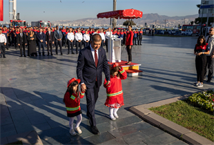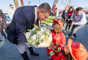 “Bugün burada, hayatlarını insanların güvenliği ve yaşamı için ortaya koyan itfaiyecilerimizi onurlandırmak için toplandık. Yangınla, afetle, felaketle mücadelede en ön safta duran, hiçbir tereddüt göstermeden kendini ateşe, dumana, yıkıntıya atan, her gün canını ortaya koyan bir meslek grubundan söz ediyoruz. Sizler yüzünüzü ateşe dönerken, yurttaşlarımızın can güvenliği ve huzur içinde yaşaması için savaşıyorsunuz. Biliyoruz ki itfaiyemizin her müdahalesinden, her kurtarma çalışmasından, yanan bir binadan çıkarılan her candan sonra geriye, bu kentin vicdanına yazılmış bir kahramanlık hikâyesi kalıyor. Gösterdiğiniz cesaret ve fedakârlık sayesinde her yıl on binlerce insanın evi, hayatı ve umudu korunuyor. Bu kentin size minneti büyük. Bugün İzmir’in sahip olduğu dayanışma ruhunun en güçlü temsilcileri sizlersiniz. Güçlü bir itfaiye, güven içinde yaşayan bir İzmir demek.”