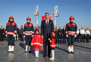 İzmir Büyükşehir Belediye Başkanı Dr. Cemil Tugay, İtfaiye Teşkilatı’nın kuruluşunun 311, teşkilatın belediyelere devredilişinin 102’nci yıl dönümü nedeniyle Cumhuriyet Meydanı’nda düzenlenen törene katıldı. Başkan Tugay’ı alana girişte itfaiye personelinin çocuklarından 5 yaşındaki İsmira Çakıroğlu ile 3 yaşındaki Asya Honça çiçekle karşıladı. Atatürk Anıtı’na çelenk sunulmasıyla başlayan törene Başkan Tugay’ın yanı sıra İzmir Büyükşehir Belediyesi Başkan Vekili Dr. Zafer Levent Yıldır, İzmir Büyükşehir Belediyesi Genel Sekreteri Zeki Yıldırım, Genel Sekreter yardımcıları Prof. Dr. Pınar Okyay, Dr. Hakan Uzun, İsmail Mutaf,  İtfaiye Dairesi Başkanı Yaşar Korkmaz, İzmir İl Afet ve Acil Durum Müdürü (AFAD) Nazif Ekinci ile itfaiye personeli katıldı.