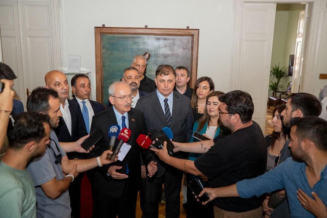 Görüşmenin ardından basın mensuplarına açıklama yapan Kemal Kılıçdaroğlu, “Her belediyenin olduğu gibi İzmir’in de sorunları var. Ama biz Başkan Cemil Tugay’ın var olan sorunları akılcı politikalarla çözeceğine inanıyoruz. Dolayısıyla kendisini tekrar kutluyorum ve görevinde başarılar diliyorum” dedi.
