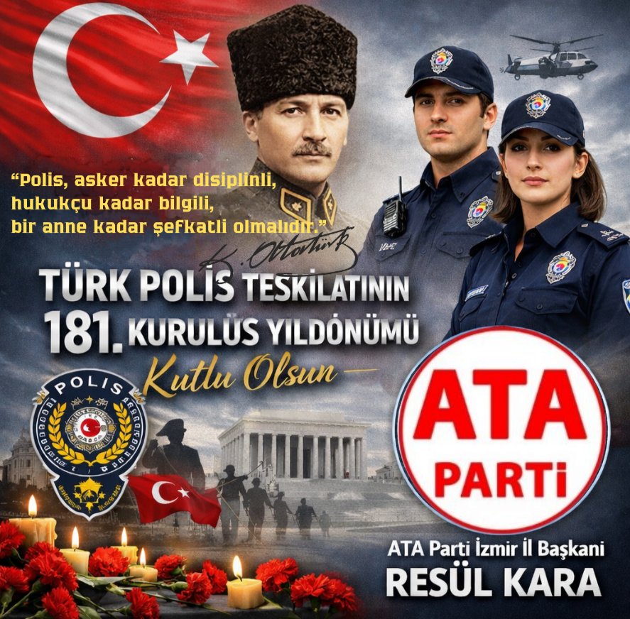 Türk Polis Teşkilatımızın 181. kuruluş yıl dönümünü gururla kutluyoruz. Milletimizin huzur ve güvenliği için gece gündüz demeden fedakârca görev yapan tüm polislerimize şükranlarımızı sunuyor, görevleri başında şehit düşen kahramanlarımızı rahmetle, gazilerimizi minnetle anıyoruz. Gazi Mustafa Kemal Atatürk’ün de ifade ettiği gibi: “Polis, asker kadar disiplinli, hukukçu kadar bilgili, bir anne kadar şefkatli olmalıdır.” Bu bilinç ve sorumlulukla görev yapan Türk Polis Teşkilatımızın her bir mensubuna teşekkür ediyor, başarılarının devamını diliyoruz.