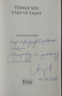 Ayrıca, ‘Türkçe Söz – Yaşa ve Yaşat’ adlı yeni kitabını nazik bir şekilde imzalayarak bizlere takdim etmesinden dolayı kendisine teşekkür ediyorum. Kaynak eser niteliği taşıyan bu kıymetli çalışmanın geniş kitlelere ulaşmasını temenni ediyor, her hemşerimizin bu eserde kendinden bir parça bulacağına inanıyorum.”