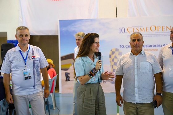 “Son derece güzel bir Open Turnuva’nın kapanışında bir aradayız. Bugün burada olmak benim için çok kıymetli, çok önemli. Çünkü son zamanlarda aldığımız başarıları sizlerle de paylaşmaktan büyük bir mutluluk duyuyorum. Evet, ben buraya Rodos’tan geldim. Rodos’ta, Avrupa Genç Takımlar Satranç Şampiyonası vardı. U12 kızlarda şampiyon olduk ve U12 erkeklerde de ikinci olduk. Ülke derecesi ile beraber biz oradan üç kupa, altı masa derecesiyle döndük. Rodos’tan hemen önce İrlanda’da Avrupa Okullar Satranç Şampiyonası vardı. İrlanda’da turnuva 12 kategoride yapıldı ve biz 12 kategoride şampiyonluk mücadelesi verdik ve hepsinde de şampiyon olduk. Biraz önce tüylerimiz diken diken, İstiklal Marşı’nı okurken İrlanda’da olmak vardı dedim. Hemen o günü ve o geceyi hatırladım. Sporcularımız sayesinde İrlanda’da tam on iki kez İstiklal Marşımız okundu ve bayrağımız göndere çekildi. Çeşme’den de yıldızımız var zaten. Bugün Türk satrancının Avrupa’da dünyada geldiği noktada inanın ki işte yaptığımız yirmiye yakın uluslararası açık satranç turnuvalarının çok önemi var. Çeşme’de 10’uncusunu yapıyoruz. Bir turnuvayı yapmak oldukça önemli ama on yıldır aynı turnuvayı bir önceki yıldan çok daha üzerine koyarak, çok daha güzelliklerle yapabilmek büyük bir başarı, büyük bir gurur.”
