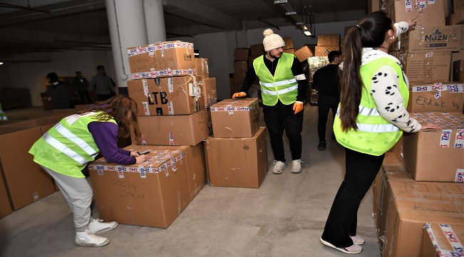 Çoğu gençlerden oluşan gönüllüler, gelen yardımları açarak, ayırıyor. Gıda, kıyafet, mont, battaniye, hijyen malzemesi, bebek bezi, mama gibi tüm malzemeler guruplandırılarak, paketleniyor ve kolilere yerleştiriliyor. Üzerlerine ne olduğu yazılarak, bantlanıyor ve tırlara taşınıyor. İhtiyaç bölgesine göre belirlenen tırlara yerleştirilen koliler her gece deprem bölgesine doğru yola çıkıyor.